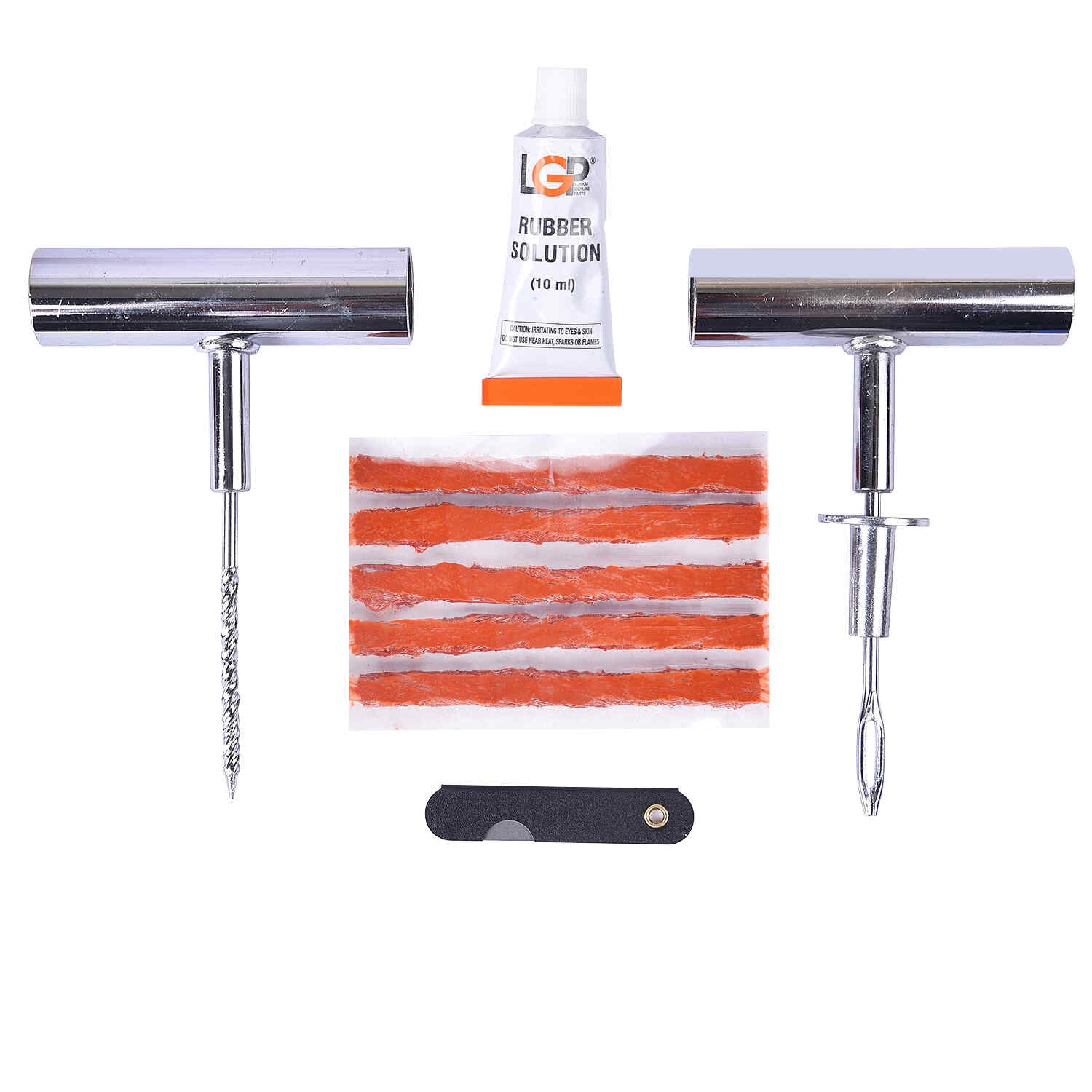A “heavy-duty” puncture repair kit is designed to handle tougher, more serious punctures — often on tubeless tires (cars, motorcycles, trucks, ATVs). These kits are more robust than simple bicycle patch kits, and they usually include tools and materials to plug holes rather than just patch from the inside.